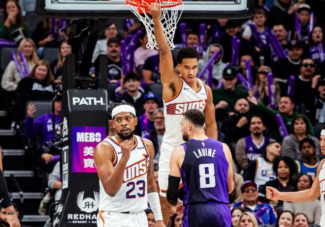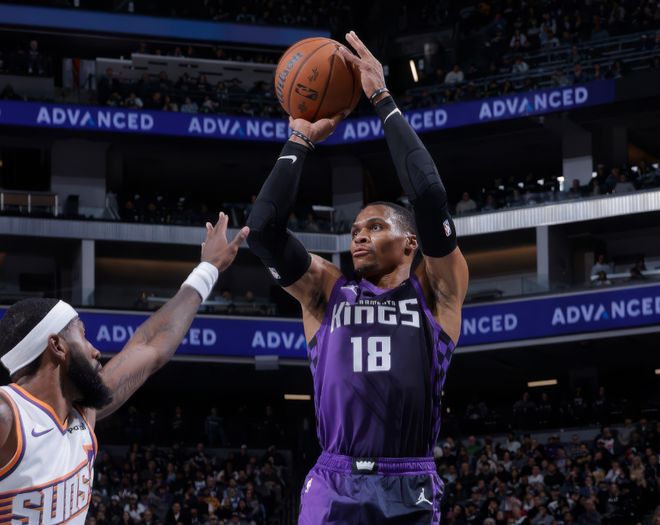 北京时间11月27日,NBA常规赛(NBA杯)继续进行,国王主场迎战太阳。赛季前美媒预测这两支球队都是坦克大队,但赛季开打一个月,处境天差地别。太阳此前战绩11胜7负,排名西部第六;国王此前战绩只有5胜13负,排名西部第十二。半个多月前,美媒就确认国王将三巨头德罗赞+拉文+小萨博尼斯摆上货架,球队也经历了一波连败。不过过去两场比赛,国王分别逆转战胜掘金+森林狼,威少功不可没。国王当下的处境其实很不妙,小萨因膝盖伤势长时间休战,拉文从数据刷子下滑到小透明,德罗赞状态起伏很大。