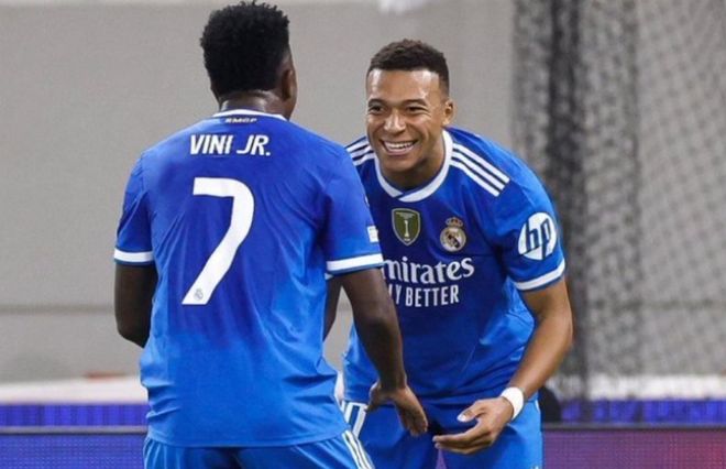 第22分钟,维尼修斯送出外脚背助攻,姆巴佩突入禁区抽射破门,帮助皇马1-1扳平。