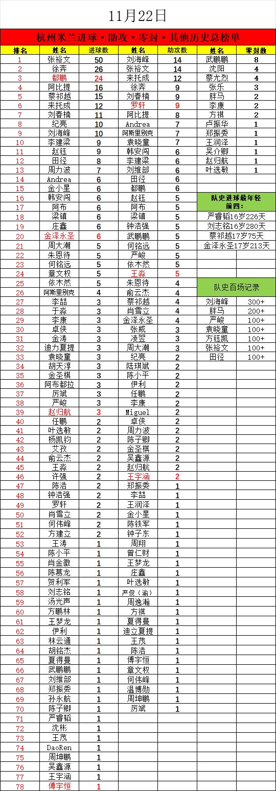 首先恭喜傅宇恒成为第78名为杭州米兰进球的队员[庆祝][庆祝][庆祝]