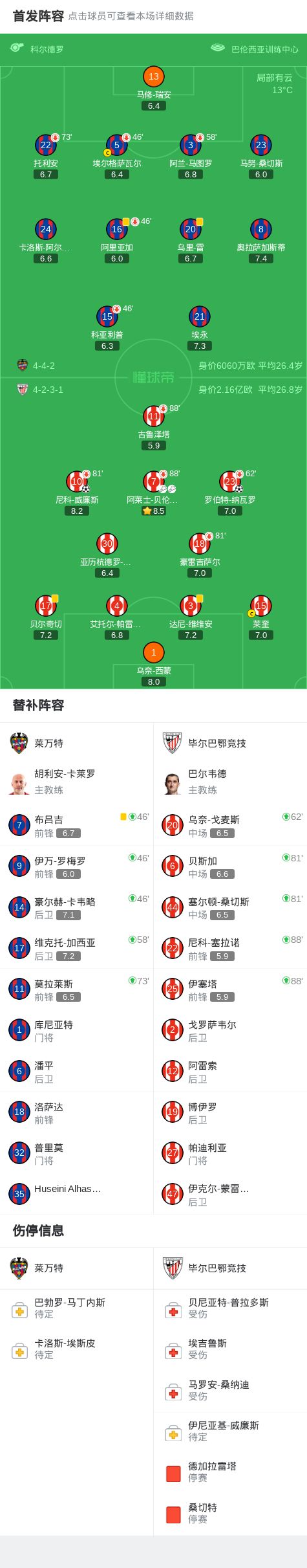 北京时间11月30日,西班牙足球甲级联赛第14轮,莱万特坐镇主场迎战毕尔巴鄂竞技。比赛中,阿莱士-贝伦格尔送出两次助攻,罗伯特-纳瓦罗率先打破僵局,随后尼科-威廉斯再下一城。凭借这两粒进球,毕尔巴鄂竞技客场2比0战胜莱万特。