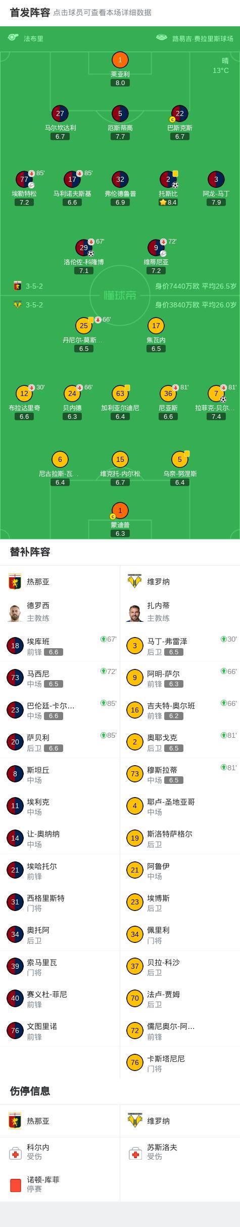 热那亚2-1逆转维罗纳,托斯比、洛伦佐-科隆博建功